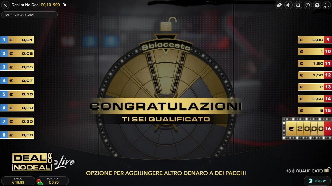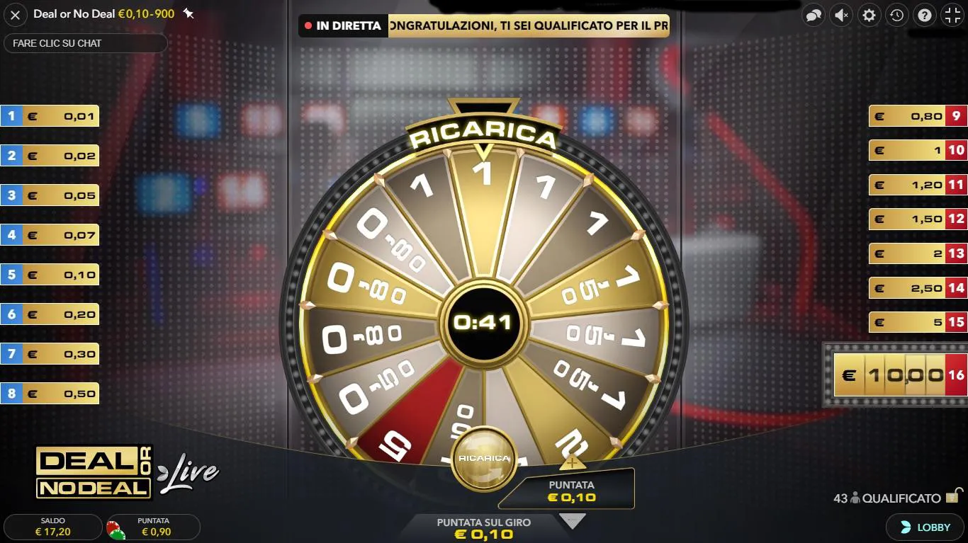 Ispirato a un celebre format televisivo che ha raggiunto da anni anche le case dei telespettatori italiani e realizzato da Evolution Gaming con la partnership della Endemol (la nota casa produttrice di show per il piccolo schermo, come ad esempio il Grande Fratello e altri reality), il Deal or No Deal è solo l'ultimo dei giochi introdotti di recente nei casinò dal vivo di alcune sale da gioco AAMS. Al momento, i casinò che offrono questo titolo sono pochi, ma è possibile che in futuro se ne aggiungano anche degli altri. Visto il successo riscosso dal gioco dei pacchi in tv, la formula di questo Deal or No Deal ricorda molto da vicino proprio la fortunata trasmissione televisiva, anche se la versione da casinò prevede alcune novità a livello di regolamento. Il Deal or No Deal, infatti, si segnala per il ritmo di gioco abbastanza serrato e per dei tempi piuttosto ristretti scanditi sempre dal timer visibile in primo piano. Di sotto potete vedere come si gioca e le regole.